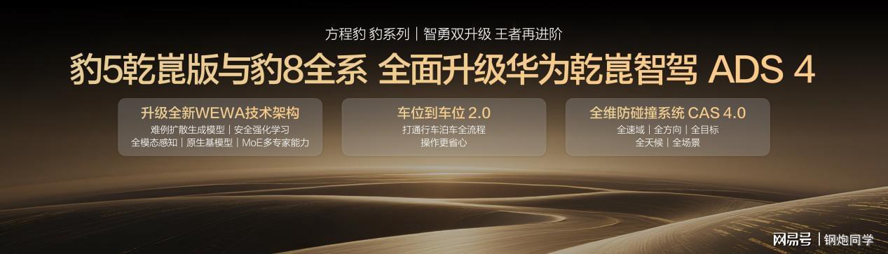 豹5全系搭载“天神之眼”及乾崑ADS 4系统,具备790mm涉水深度、13吨顶压承重、100%高强钢车架、5层电池防护及11安全气囊等五大被动安全防护。