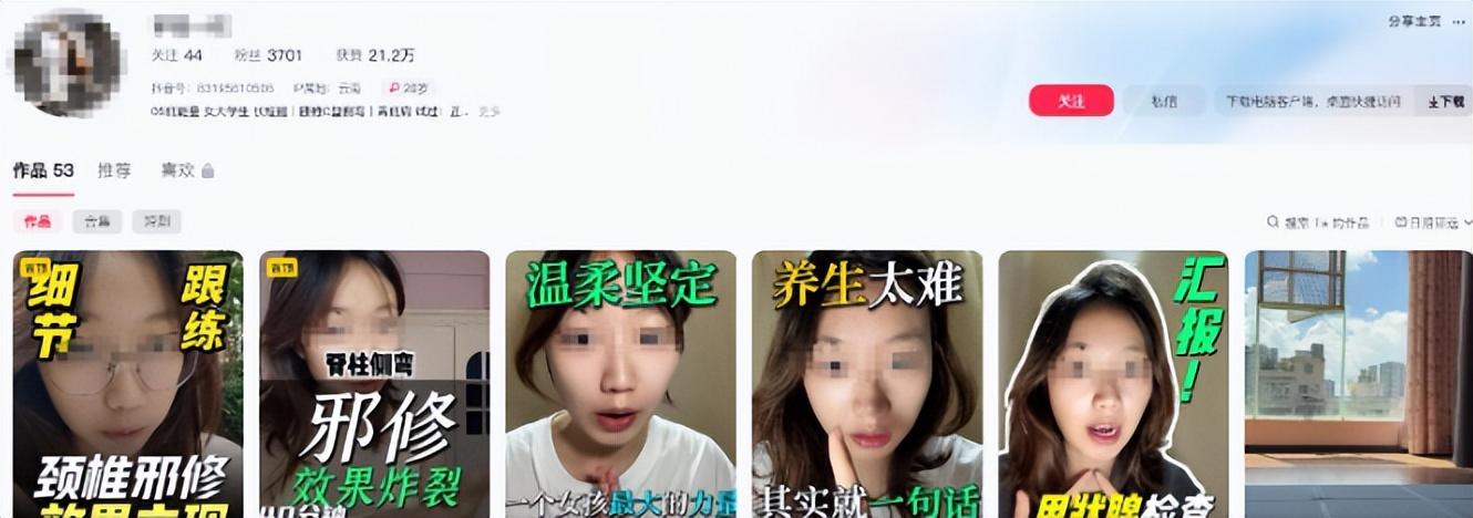 她的养生类账号此前频繁发布诸如“七日排毒法”“跳绳治百病”等缺乏科学依据的内容,明显带有博取关注的目的。