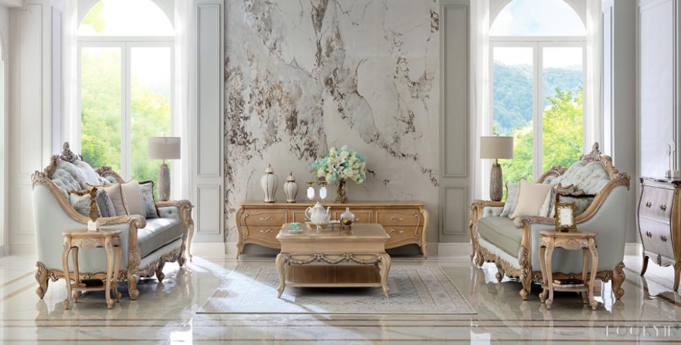 洛可可风格的精髓,在于纤巧的曲线与自然主义的雕琢。以绿色为基调的墙面,搭配描金雕刻细节沙发,仿佛将18世纪法国宫廷的花园搬入家中。