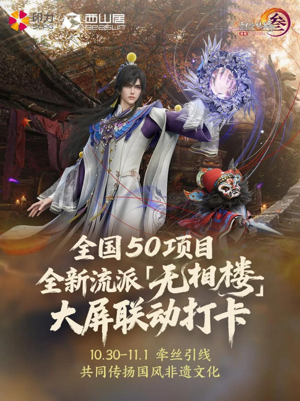 10月30日,西山居旗下现象级游戏《剑网3》全新流派「无相楼」将正式上线。10月30日至11月1日将同步开启印力商业大屏打卡活动。届时,玩家可前往印力旗下全国50个项目的户外大屏,参与首发宣传CG打卡活动,沉浸式体验新流派带来的视觉盛宴。