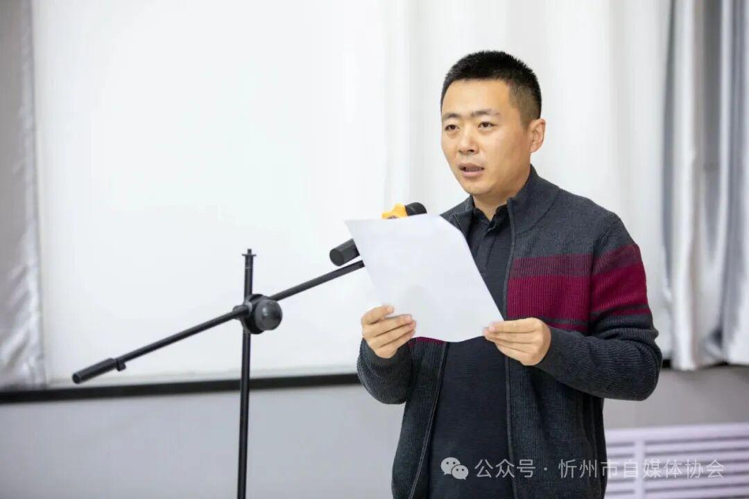 选举结束后,新当选的会长张毓华作就职发言。他对全体会员的信任与支持表示感谢,并承诺新一届领导班子将恪尽职守,勇于担当,团结带领全体会员,共同推动忻州市自媒体行业健康、有序、繁荣发展。