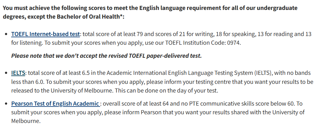 当前正值申请季,下面帮大家整理了澳八大最新申请语言要求供参考