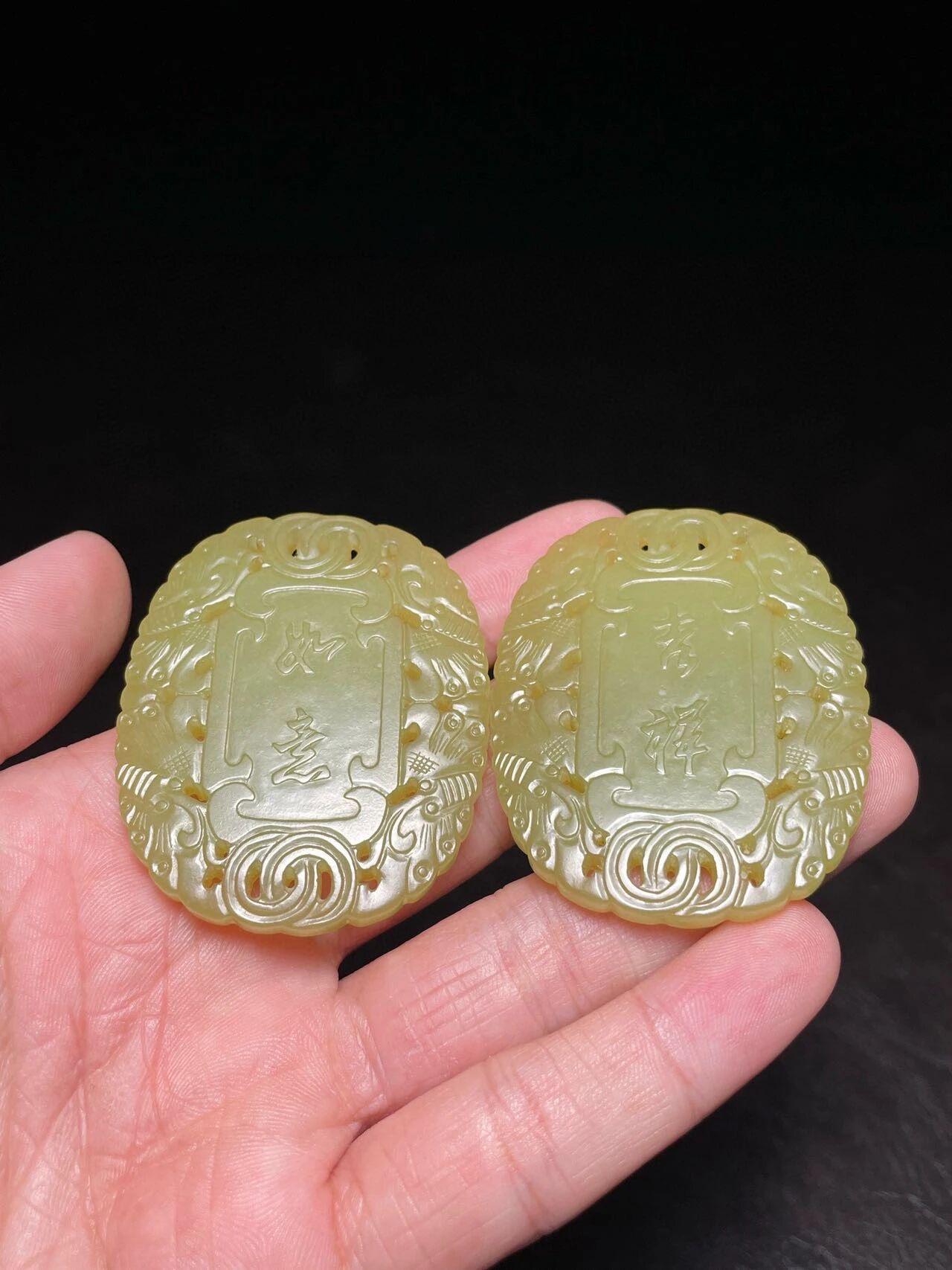 这对对牌不仅展现了清代玉雕"图必有意,意必吉祥"的典型特征,更以成对形式寄托了古人对圆满和谐的极致追求。黄玉本就珍贵难得,加之雕工精湛,实为传统玉雕艺术与吉祥文化的完美结晶。