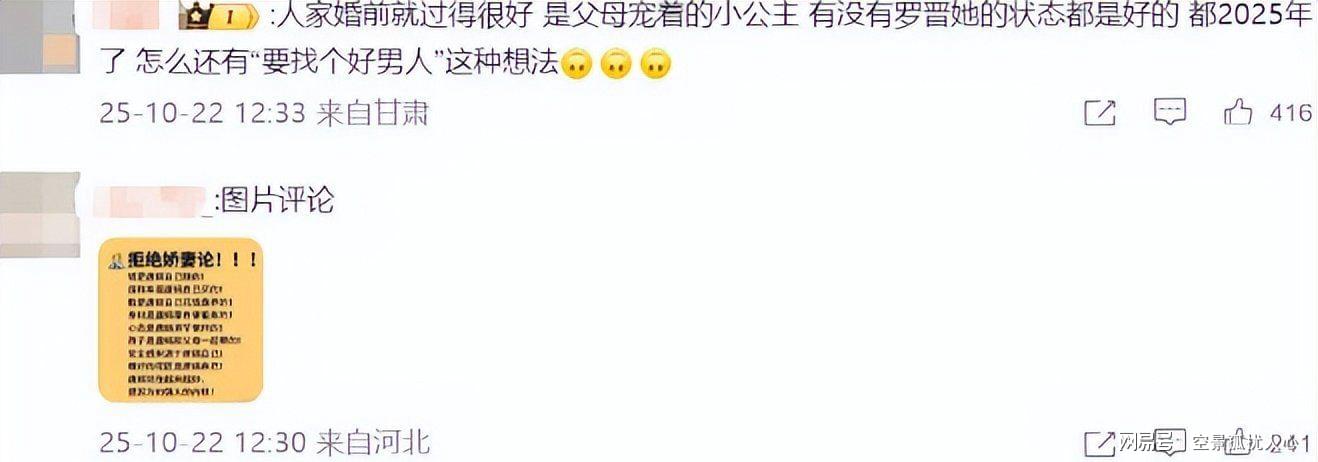 一时间评论区也有网友吐槽到“唐嫣没有罗晋一样可以过得好,2025年了还有这种想法啊。”