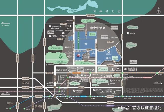 - 项目分为九期,自带19万平方米商业,这个商业体量相当于目前龙岗万科广场和世贸百货商业的总和,商业需要入住率,也预留了专门建商业的区块。隔壁的二手房小区珑禧也有1.2万平方米商业。