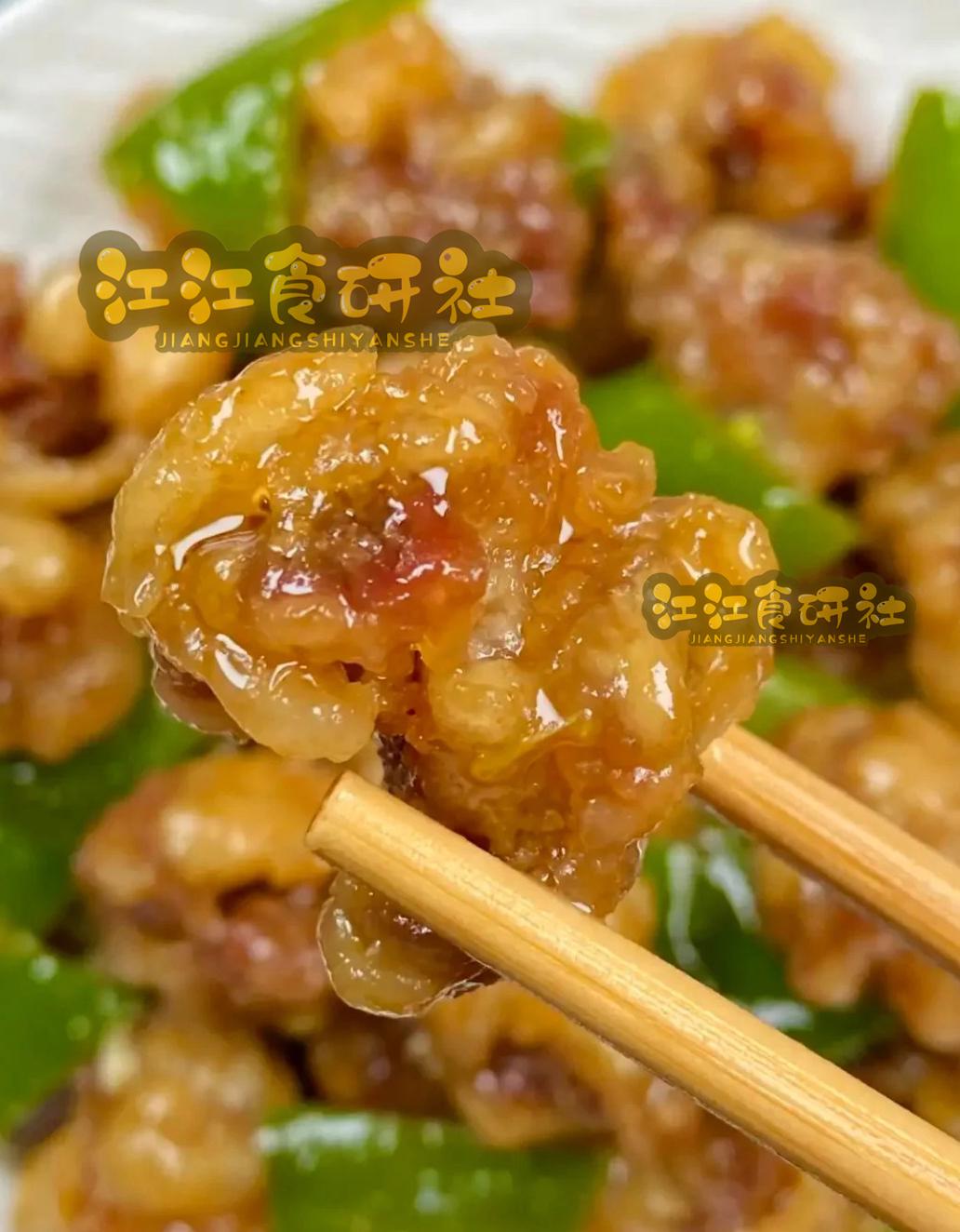 复炸"更酥脆":肉段要炸两遍,第一遍炸熟,第二遍炸酥。油温升高后快速复炸30秒,这样即使放凉了也很酥脆。