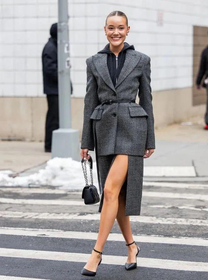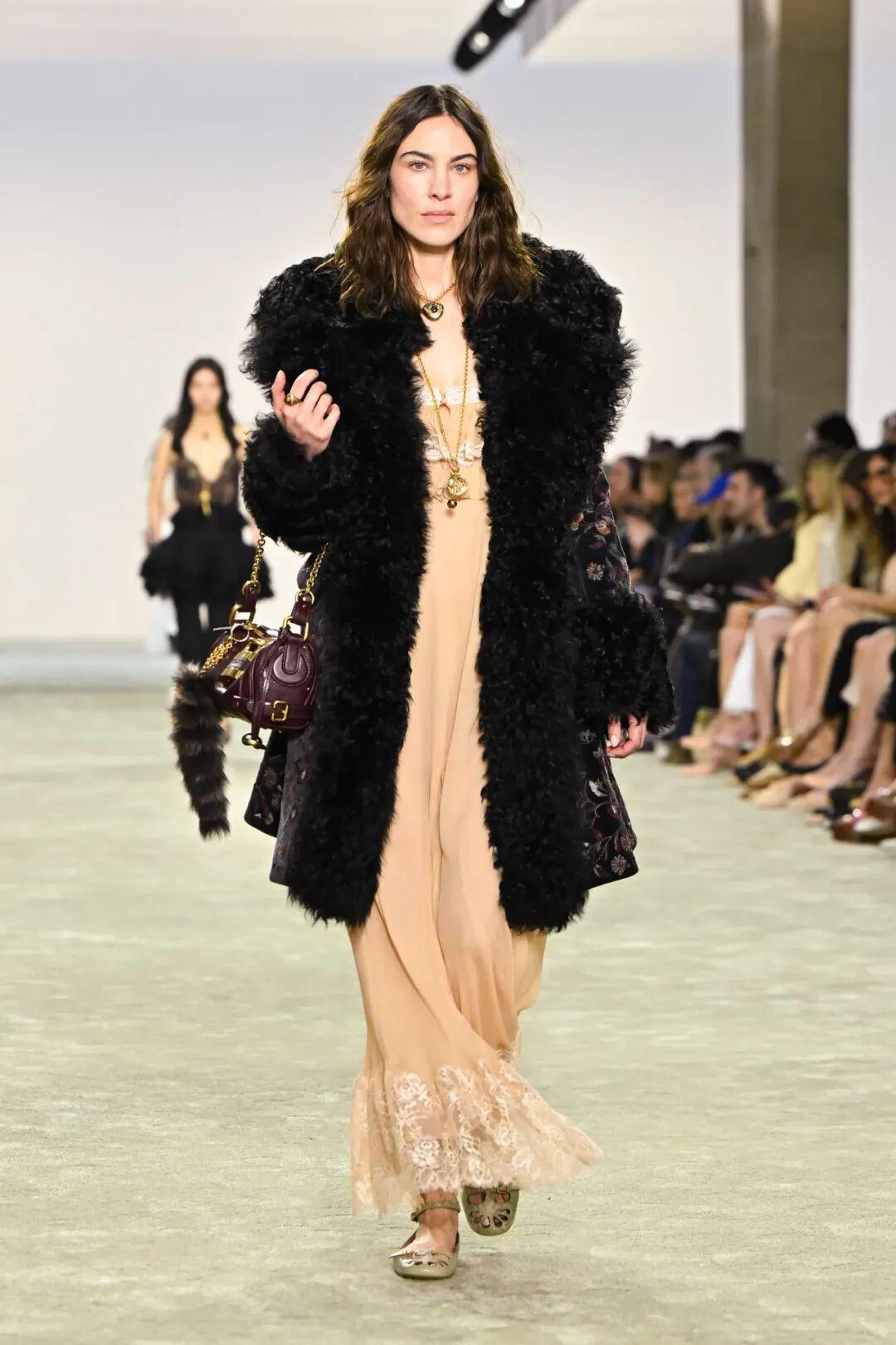 这种穿搭让人联想到《欲望都市》电影中Carrie Bradshaw套上人造皮草外套,内搭睡衣式单品的经典造型。