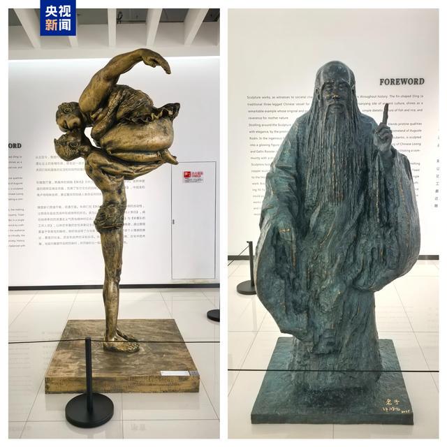 许鸿飞捐赠的个人雕塑作品《吻》以圆融形体凝结人间温情,《老子》以诙谐造型对话先贤哲思,展现出艺术家在写实与写意之间的精妙融合。
