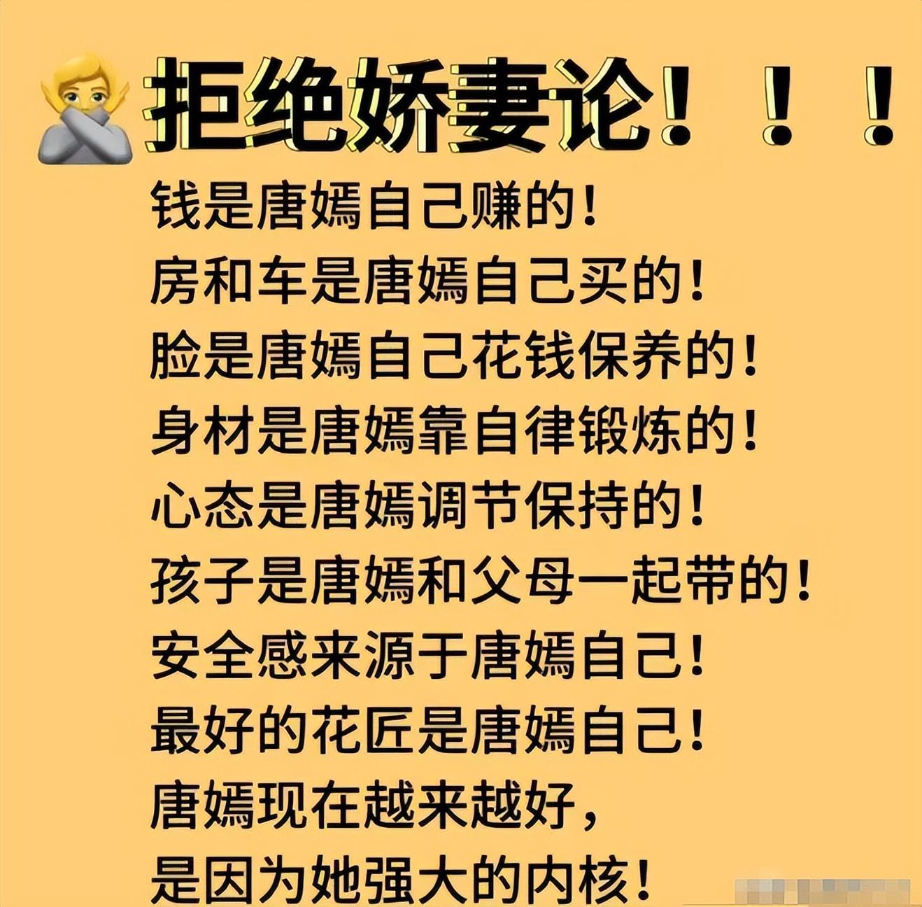 唐嫣的粉丝最先坐不住了,直接在评论区刷起了“拒绝娇妻论”。