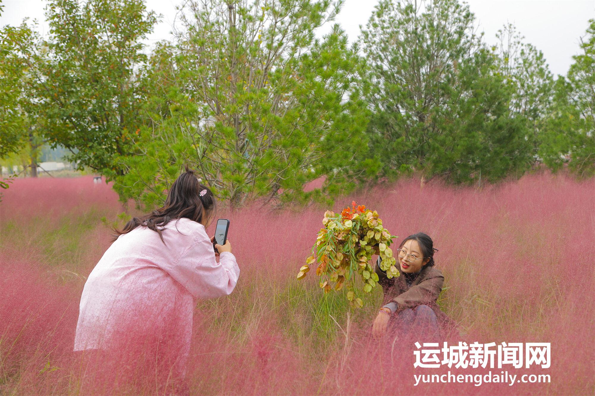 10月23日,运城市尧梦公园内一片“粉色海洋”如约绽放,吸引了众多市民前来休闲游玩、拍照打卡。