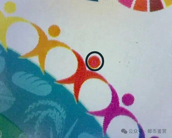 《联合国粮食及农业组织成立八十周年》纪念邮票整体使用影写版印制,在放大镜下,影写版特有的中空网点清晰可见。
