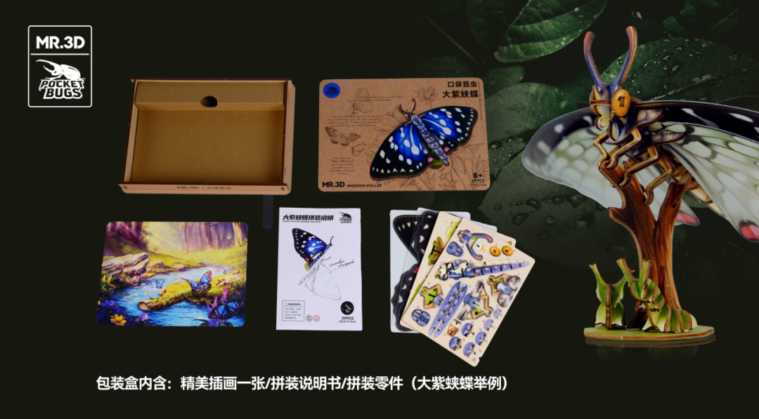 这是一组木制拼插模型,以“自然昆虫,指尖探索”为设计主旨,为热爱自然与手作的你开启微观世界的奇妙之旅。