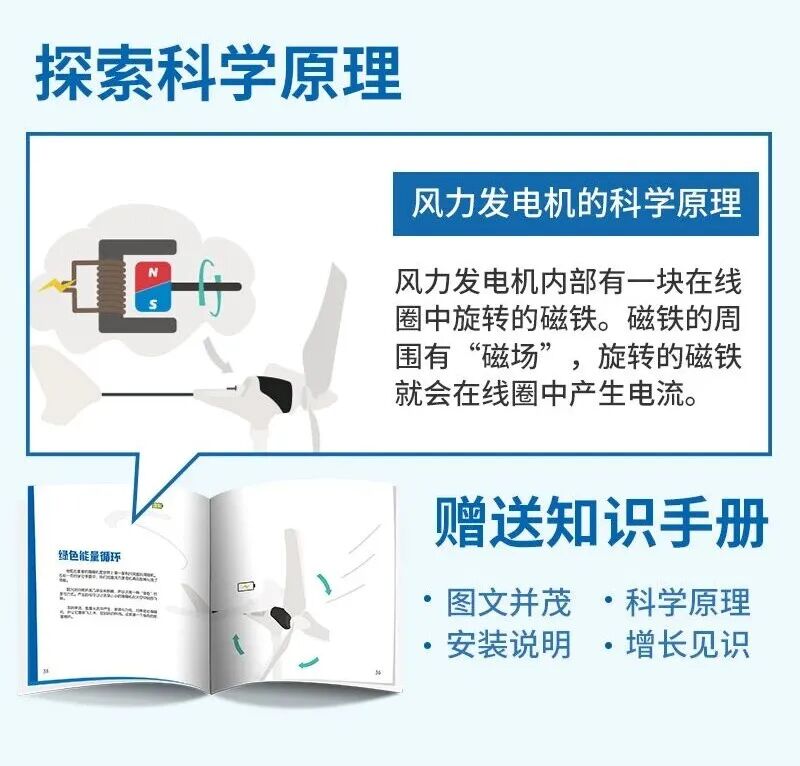 如果你也想拥有一台很哇塞的风力发电机,一定不能错过玩物百科的这款“风动能科学套装”: