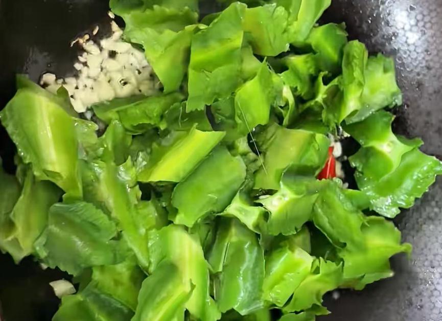 9、喜欢吃辣可以加点小米辣一起炒香。