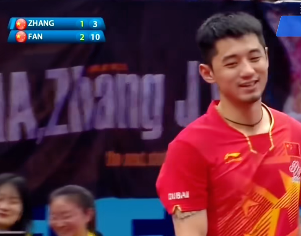 张继科脸上没有任何不高兴,反而笑容满面,甚至还带着樊振东,一起把半决赛转着圈打成“表演赛”。