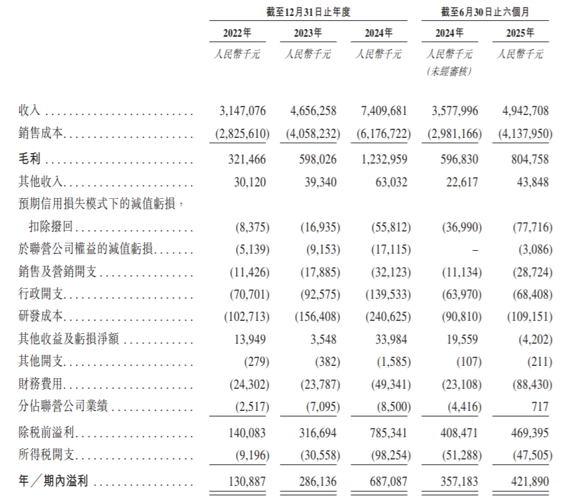 业绩方面,2022年、2023年、2024年及2025年截至6月30日止六个月,协创数据实现收入分别约为31.47亿元、46.56亿元、74.10亿元、49.43亿元;同期,年/期内溢利约为1.31亿元、2.86亿元、6.87亿元、4.22亿元。