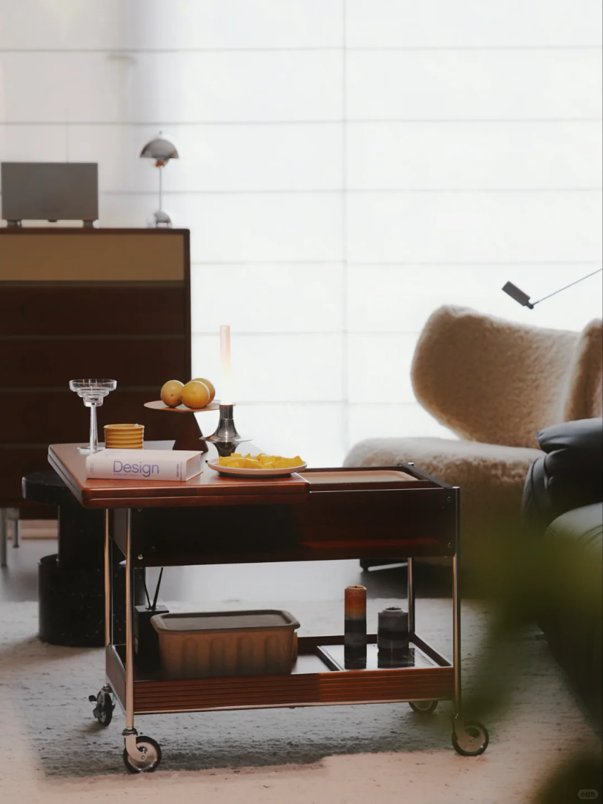 底部配备的万向轮,更是赋予了茶几前所未有的灵活性。它可以自由移动到阳台、餐厅等其他生活空间,75cm的宽度使其能够轻松嵌入沙发旁或墙角,避免了空间的拥堵,让整个家居空间“流动”起来。这种灵活的布局方式,充分彰显了包豪斯“形式追随功能”的理念,让茶几不仅仅是一个静态的家具,而是一个可以根据生活场景自由变化的动态元素。