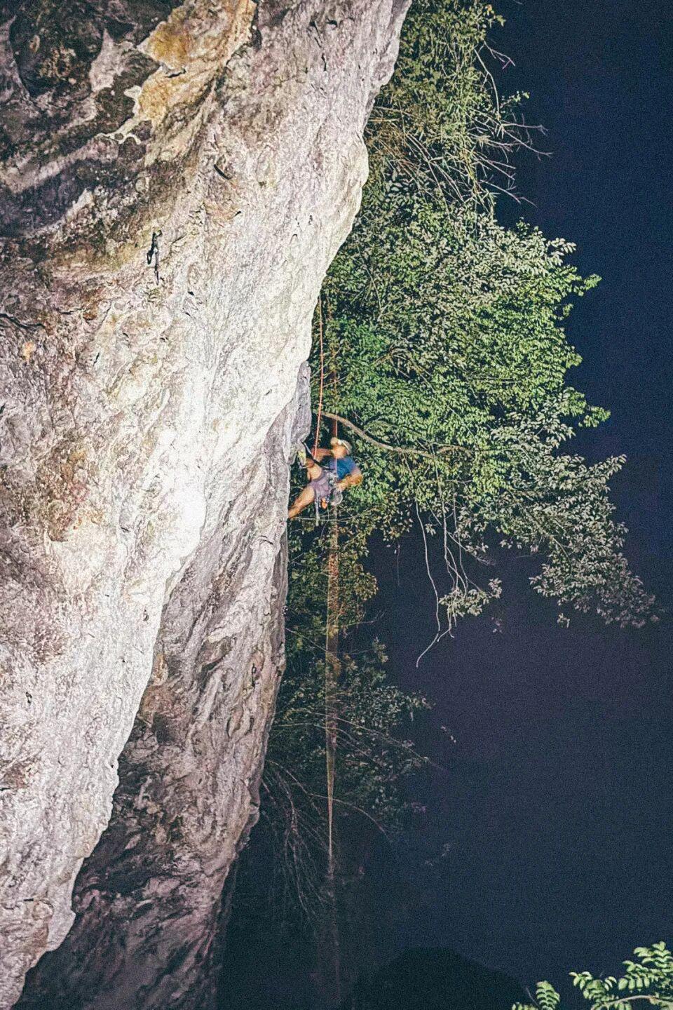 “今年之内,红掉13a”。所谓“红掉”,是指攀岩者在无坠落的情况下,一次性完成先锋攀登。许多经验丰富的攀岩者都会为自己选定一条“红线”,花费一天、一周、一个月或者一年去不断地磕线积累经验,只为完成那个目标。不少城市里的上班族每年都会抽出时间,来到阳朔一边度假一边攀岩。一路上还能遇到许多“攀岩移民”,他们因为热爱,干脆搬来了阳朔长住。
