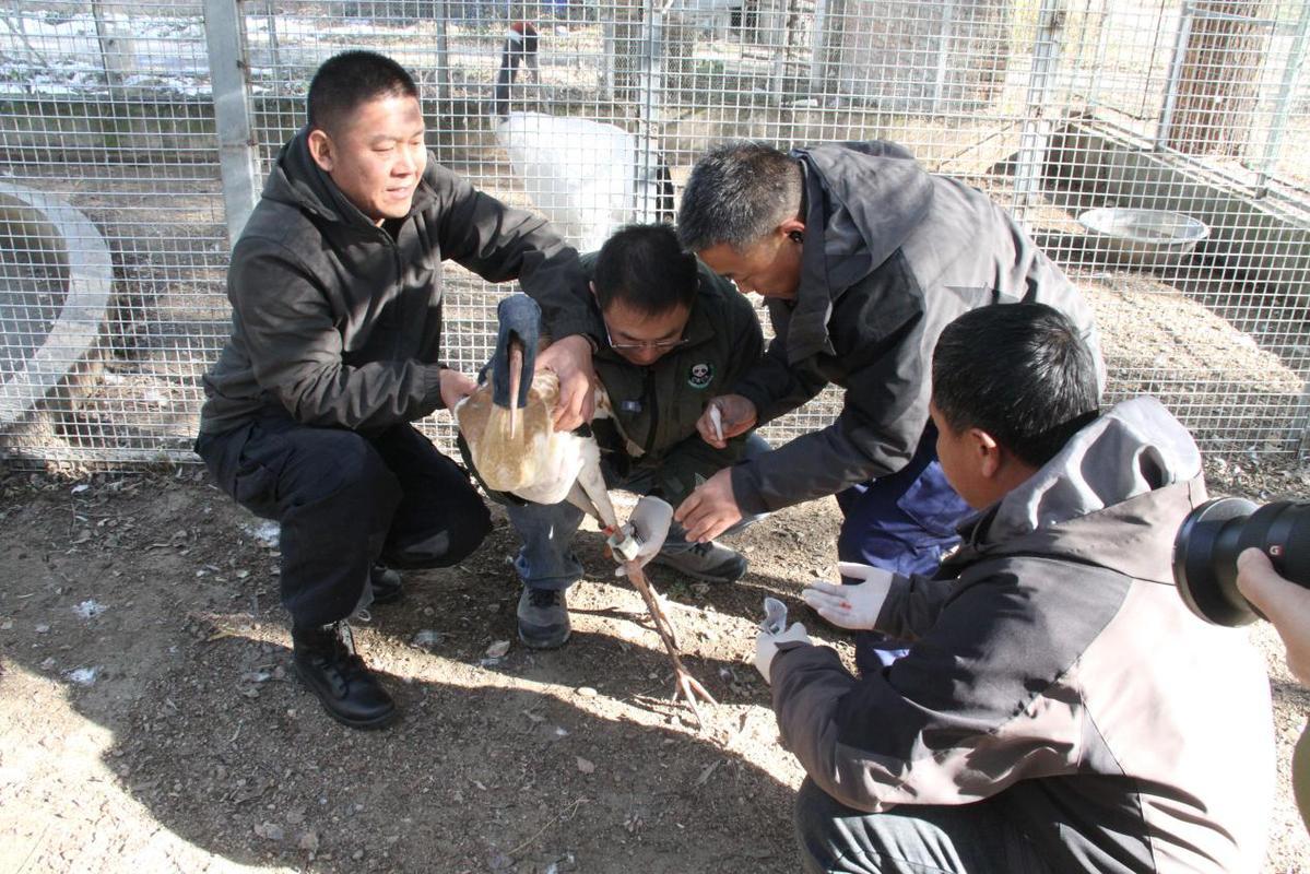 “小桥”放飞前,救护小组给它佩戴了卫星跟踪器