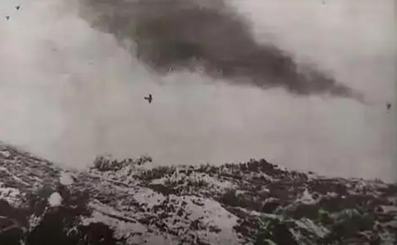 数秒之后,敌机尾部燃起大火,整个机体如焚烧的陨石般坠入山谷,滚起一团巨大的蘑菇烟云。