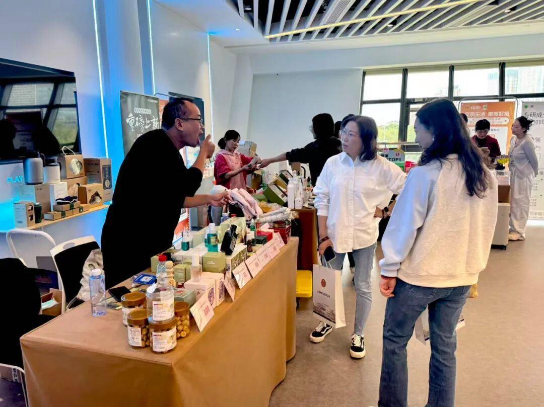 当天下午,各本地品牌商家纷纷开摊,推介产品涵盖食品、特色农产品、健康用品、日常消费品等多品类。步入展销区域,松江特色农产品展台前米香阵阵,工作人员现场蒸煮的本地大米晶莹剔透,引得不少职工驻足品尝。重阳节将近,上海松林食品(集团)有限公司特带来富硒鲜猪肉、腌腊制品、当季新米等新鲜农货与特色礼盒,吸引不少人现场选购。