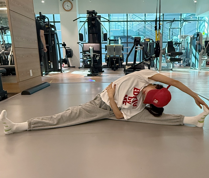尹恩惠还晒出了她前去健身房运动健身的照片,照片中的她,在健身房里认真地做着拉伸运动,似乎是刚做完运动后做拉伸的动作,她还晒出了做完健身运动后躺在地板上休息的照片。