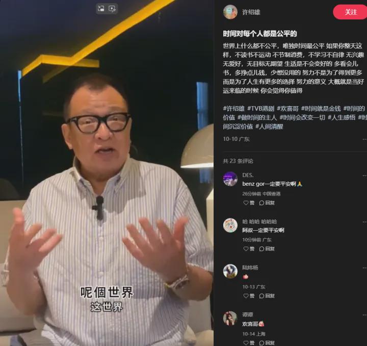 此前,根据香港媒体报道,现年76岁的资深演员许绍雄(人称"Benz哥")近日因健康原因入院治疗,情况引发关注。
