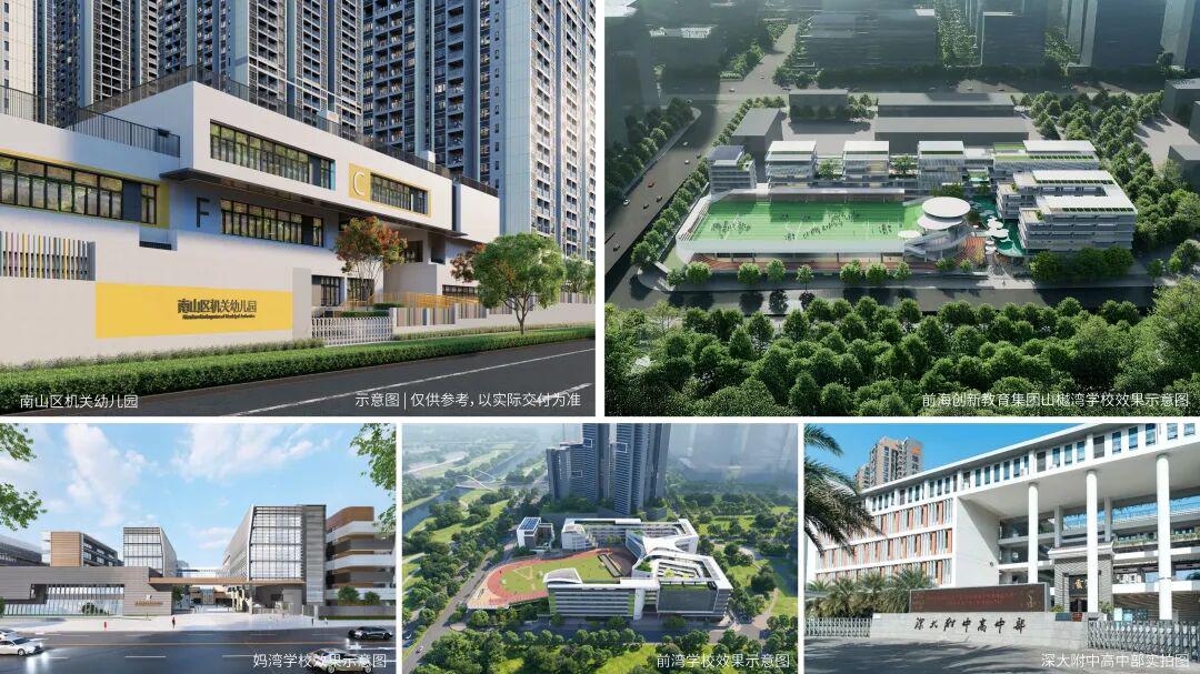 家门口配建托育机构、南山TOP1机关幼儿园,前海创新教育集团九年一贯制山樾湾学校(规划中)、一所初高中教育用地。
