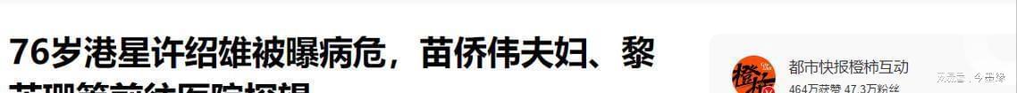 76岁的资深演员许绍雄,因为病情严重住进了医院。