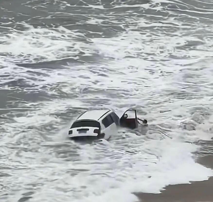据小于描述,当天下午,双月湾附近的风浪很大,游客并不多,而这辆越野车被困后,周边有不少人赶过来试图将车辆开回来,但由于浪太大了,车辆无法启动,就看到了后面司机紧急下车,然后车辆陷在泥沙里的场景。
