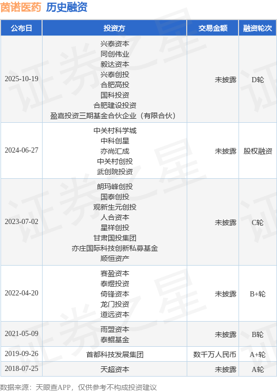 证券之星消息,根据天眼查APP于10月19日公布的信息整理,北京茵诺医药科技有限公司D轮融资,融资额未披露,参与投资的机构包括兴泰资本,同创伟业,毅达资本,兴泰创投,合肥高投,国科投资,合肥建设投资,盈嘉投资三期基金合伙企业(有限合伙)。