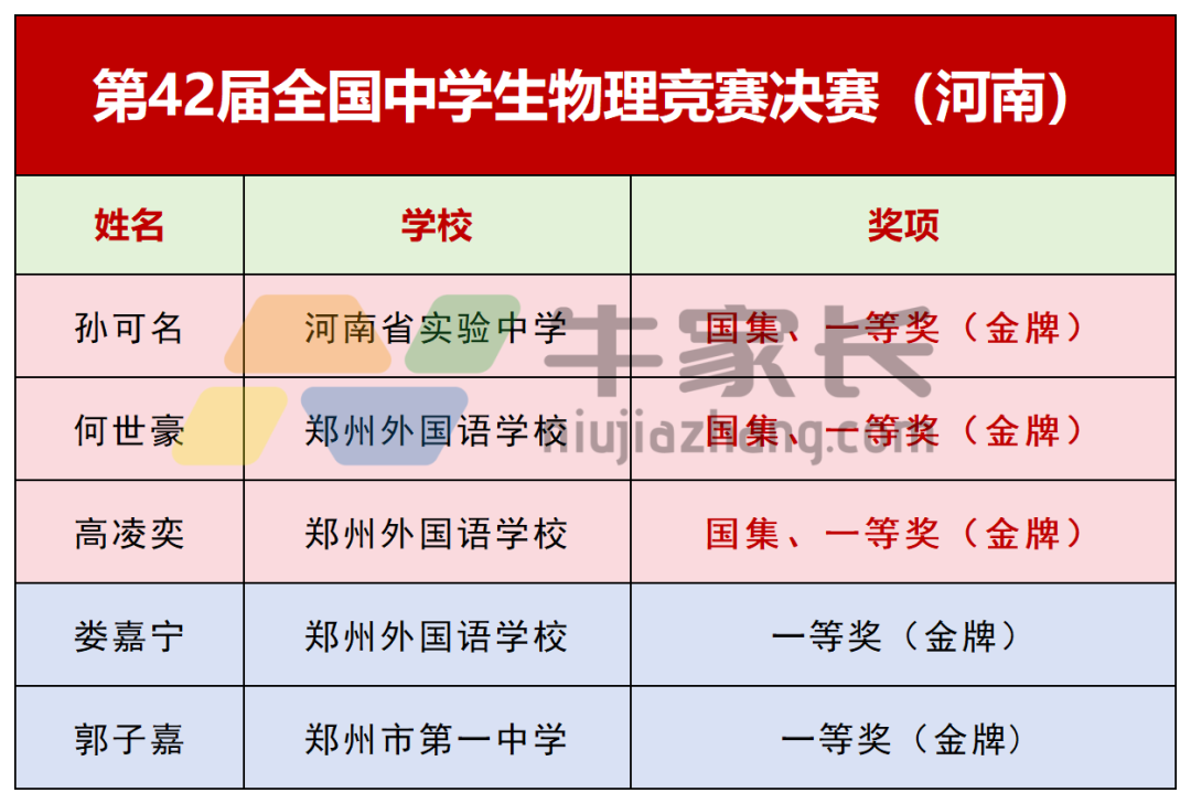 除国家集训队名单外,本次物理竞赛决赛金牌名单也值得关注。郑州外国语学校、河南省实验中学、郑州一中均有学生获奖!具体为: