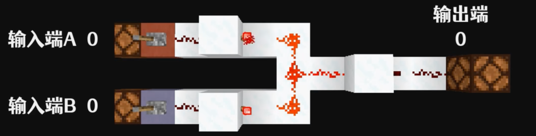通过开关的通断,红石电路可以在游戏中模拟二进制的0或1,从而构建出基础的三种逻辑门。
