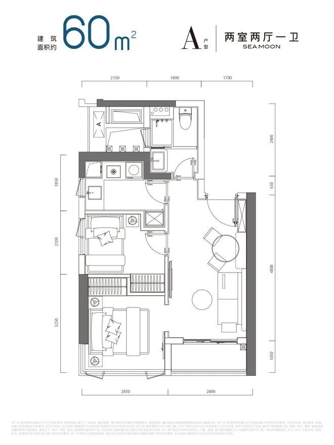 43-44㎡ | 南向瞰海一房一厅 | 落地窗