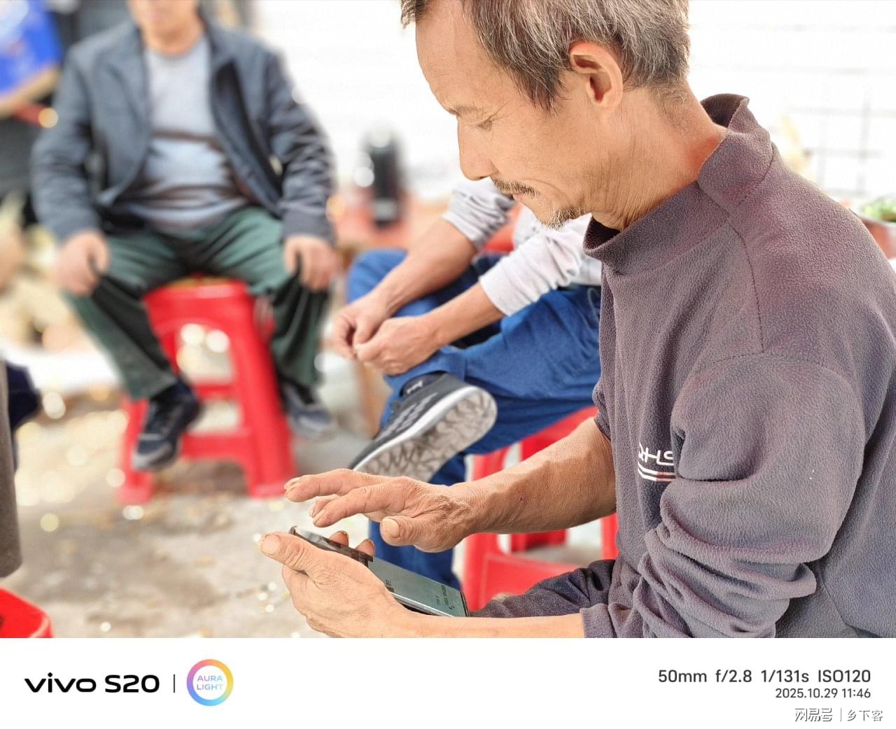 "傅大爷,这边坐!"乡贤傅道召笑着搀扶94岁的傅考六大爷往主位走。老人穿着新缝的青色棉大衣,领口沾着点阳光的温度,手里拄着晚辈精心削制的竹杖,杖头包着防滑的软布。他脚步虽缓,眼里却闪着光,路过葡萄架时,还伸手摸了摸垂到肩头的绿藤。不远处,93岁的黄秀菊奶奶被几个穿红袄的姑娘围住,有人给她递上刚剥好的香蕉,有人掏出小梳子帮她理了理银白的鬓发,奶奶笑得眼角堆起褶皱:"你们这些娃,比院里的橙子还甜!"