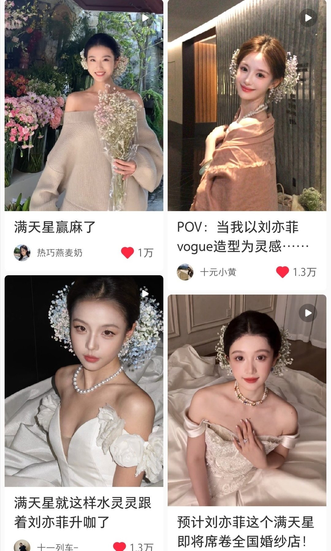 不说别的,只要一打开短视频,各大美妆博主都在纷纷进行刘亦菲“满天星造型”的仿妆。
