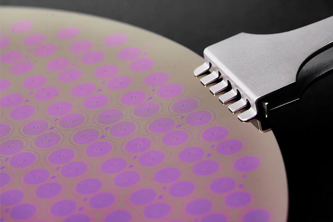 1. 在标准硅片上分别施加氧化铝层、铁层,用激光蚀刻技术在铁上刻画出游丝的轮廓,这几层就构成了“晶圆基底(wafer)”;