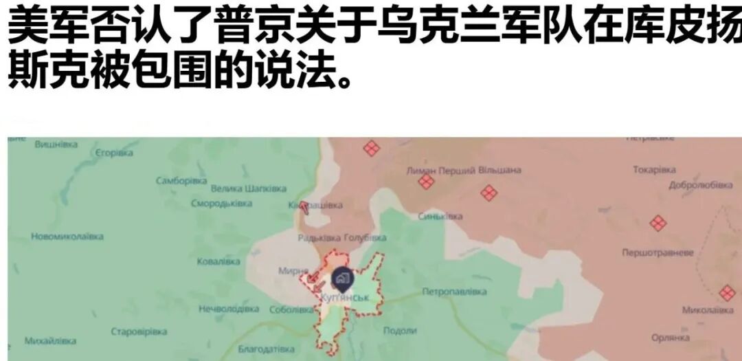 美国军方情报表示,库皮扬斯克及其周边地区正在发生激烈战斗,但有关乌克兰军队被包围的报道是捏造的。