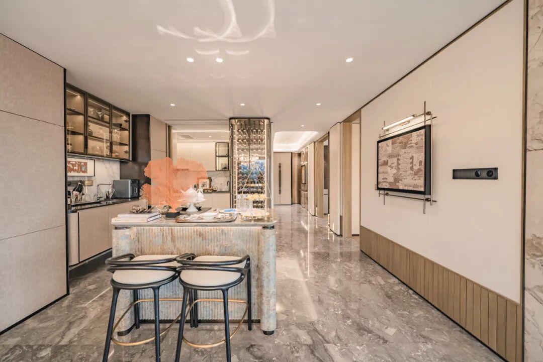 中西双厨与奢石中岛衔接,构成一处社交中枢。