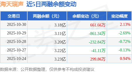 证券之星消息,10月30日,海天瑞声(688787)融资买入3046.84万元,融资偿还2385.17万元,融资净买入661.66万元,融资余额3.18亿元。