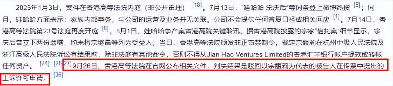 当时,文件中清晰地说明,针对宗馥莉提出的包括对冻结资产几项异议的上诉申请,法院予以驳回。