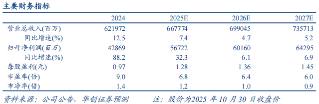 2025Q1-3,集团实现归母净利润468亿元,同比+28.9%;截至2025Q3,归母净资产达到3141亿元,较上年末+16.9%。其中,2025Q1-3人保财险COR同比-2.1pct至96.1%;人保寿险NBV同比+76.6%;资管业务实现未年化总投资收益率5.4%,同比+0.8pct。