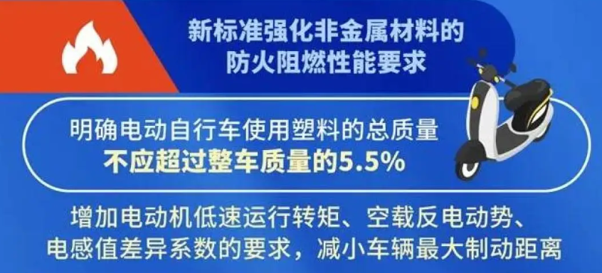 根据新国标标准的要求,提高了电动车的材料标准,比如要提高电动车零部件的防火阻燃性能,电动车需要选择阻燃性能更强的塑料件以及线束,价格会出现成倍的增长。