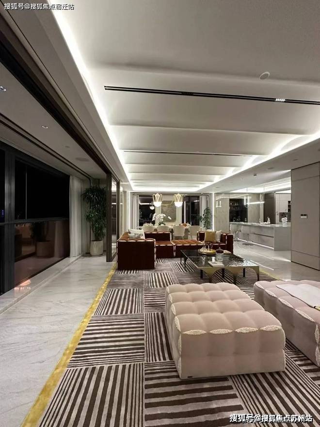 古北壹号公馆售楼处电话☎:400-882-8814(预约热线)✔✔✔本案中墙顶面采用了“顶盖墙”的设计,只在沙发和电视背景墙两端留出空间安装隐藏灯带,既满足了层次感需求又让整体造型更加统一、美观。