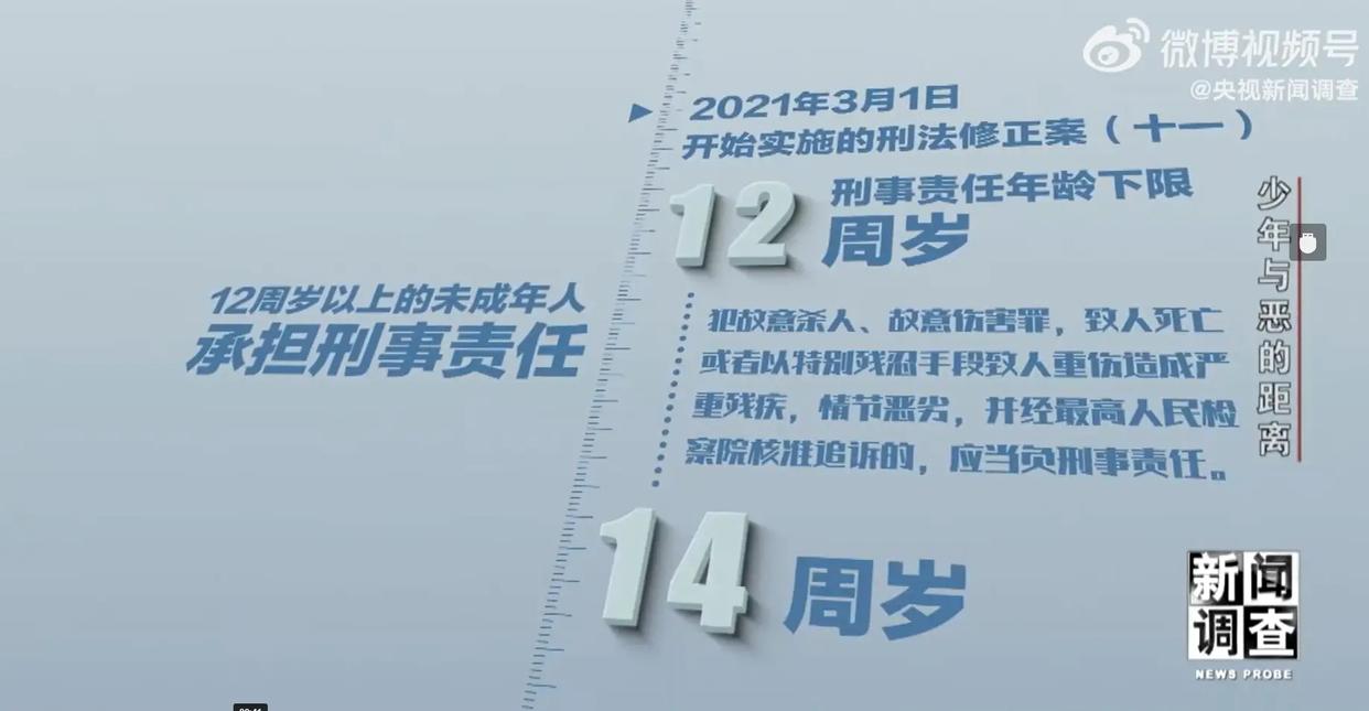 最让网友疑惑的是:未满 14 岁不是不用负刑责吗?这就得说说 2021 年施行的《刑法修正案(十一)》,里面加了条关键规定:12 到 14 岁的孩子,犯故意杀人、故意伤害致人死亡,情节恶劣又经最高检核准的,得负刑责。