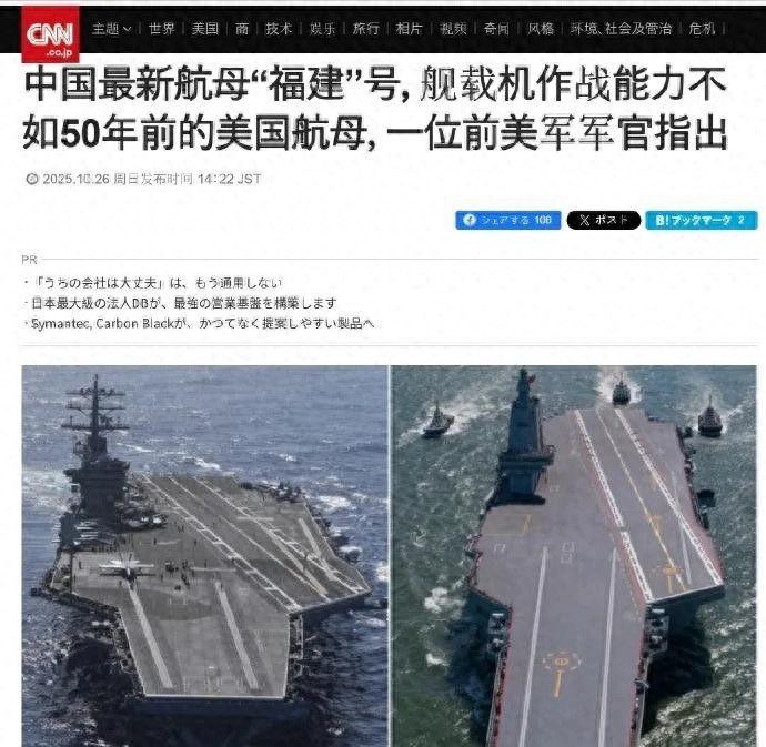2:2025年10月,美国“动力”网站旗下“战区”栏目发布评论称,福建舰整体作战能力最多达到半个世纪前尼米兹级航母的60%。