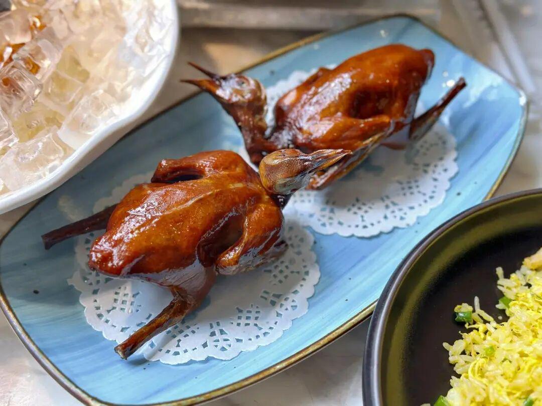 如今,非遗技艺“生炸乳鸽”用麦芽糖脆皮水锁汁,