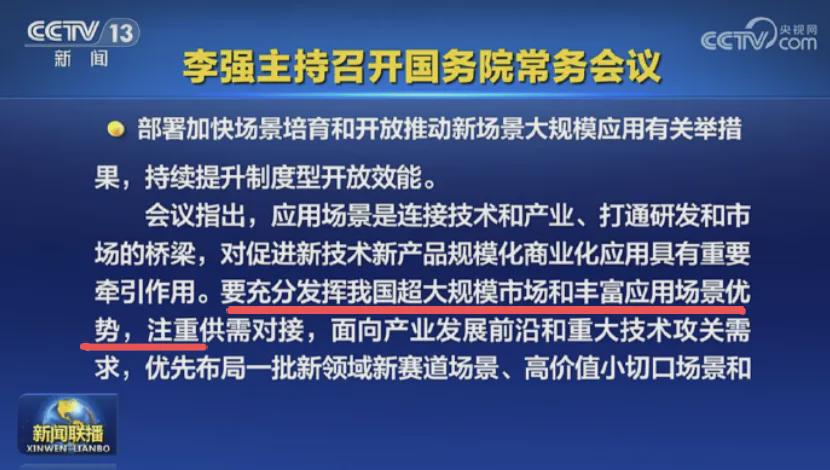 1、周五国常会直接点题:要加快场景培育,优先布局新赛道场景、高价值小切口场景