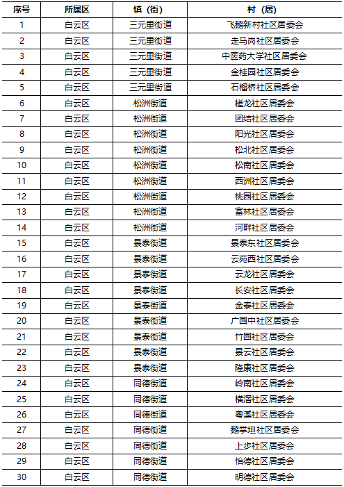 白云区270个村(社区)被抽中