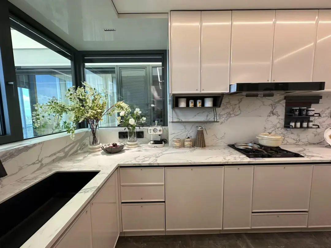 装修上配备国际一线品牌,尤其厨房由嘉格纳领衔,配备灶具、吸油烟机、洗碗机、冰箱蒸烤箱。